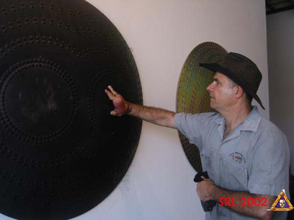 Mark Pauline leaves handprint on soot-covered art